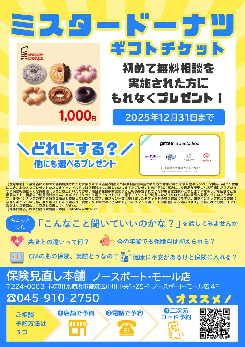 保険見直し本舗ノースポート・モール店(4F西エスカレーター前)