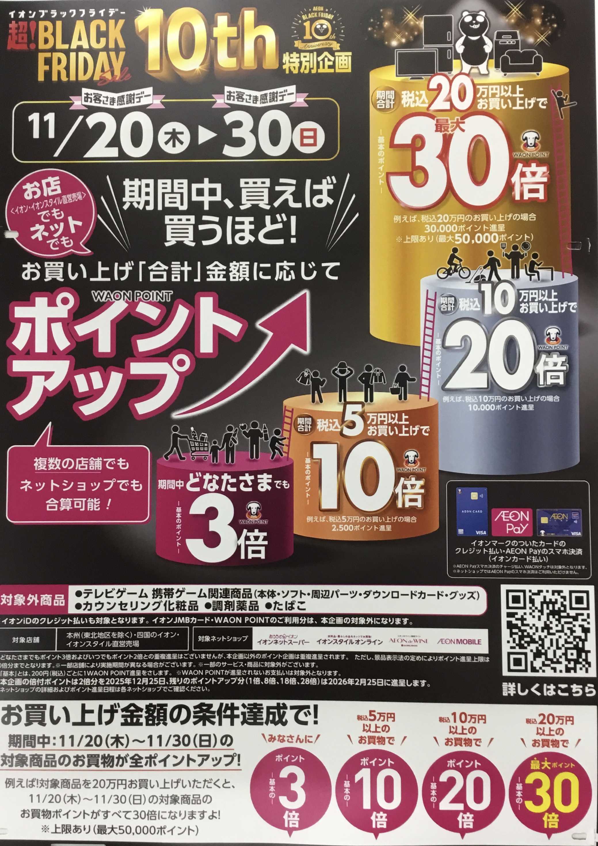 イオンカードをお持ちのお客様にポイントアップのご案内です♪