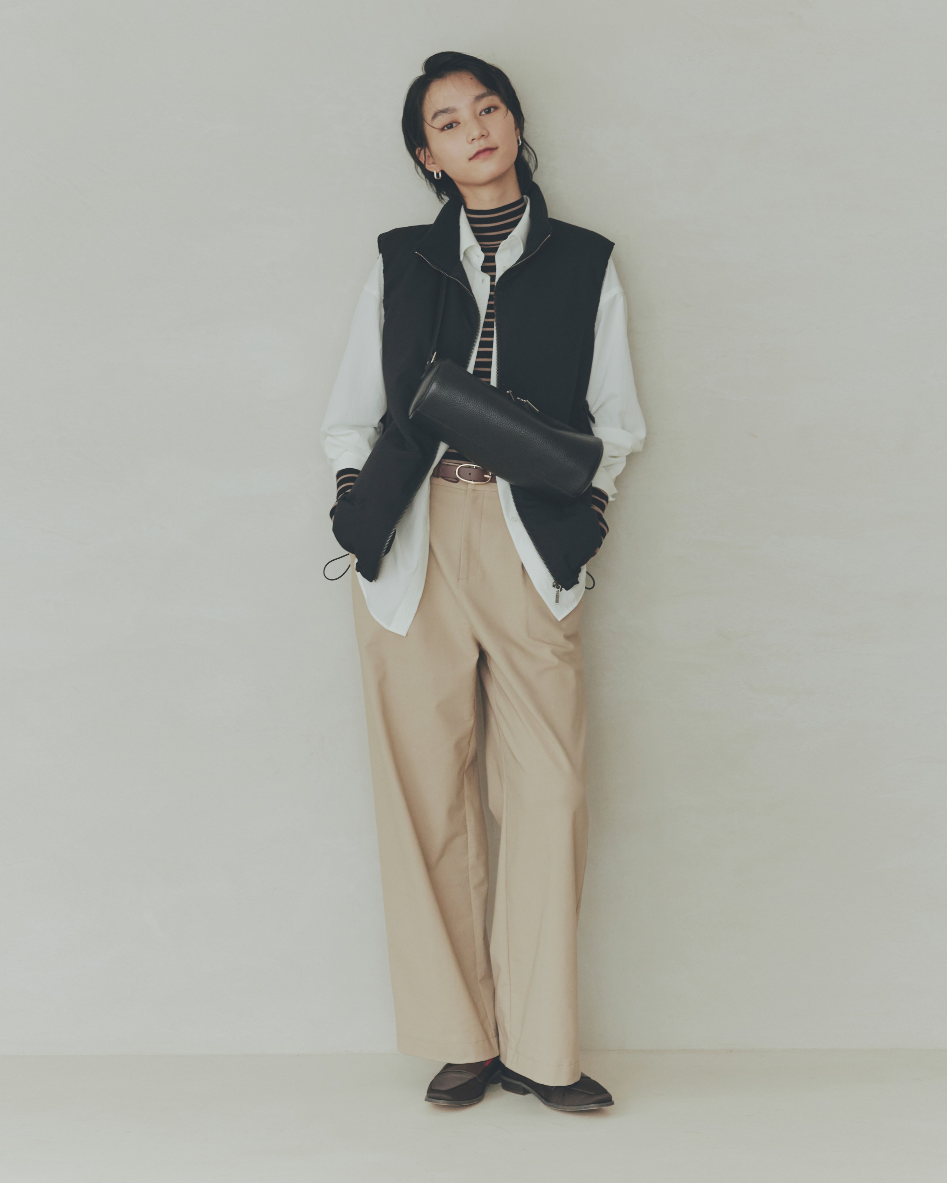 身幅や背中のタックディテールが着こなしにゆとりを与えます。