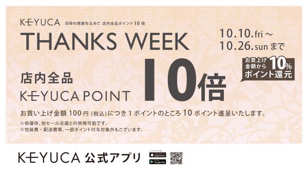 KEYUCAでは、10/26(日)までThanks Weekを開催中です