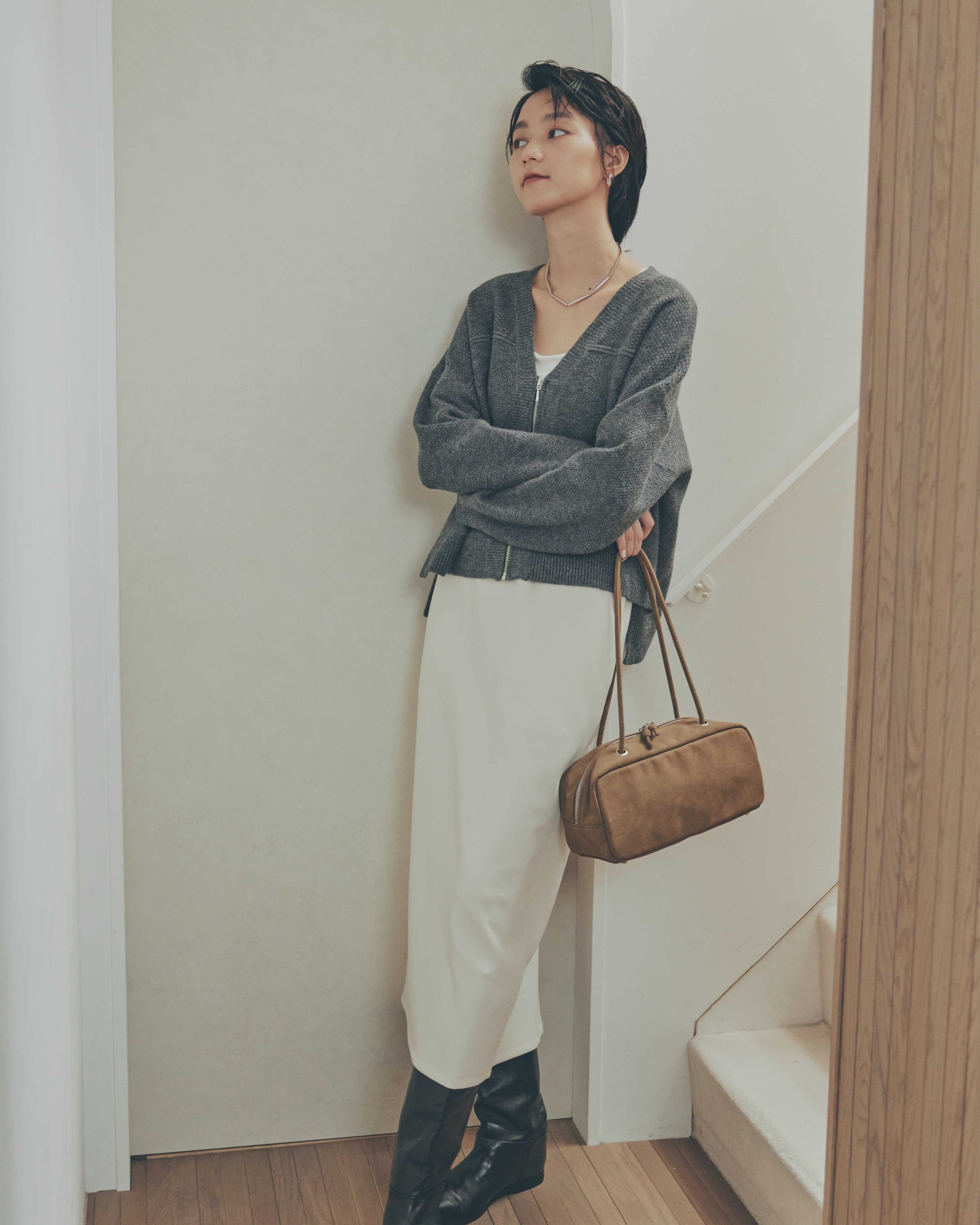 季節の変わり目の羽織りに重宝するジップカーディガン。