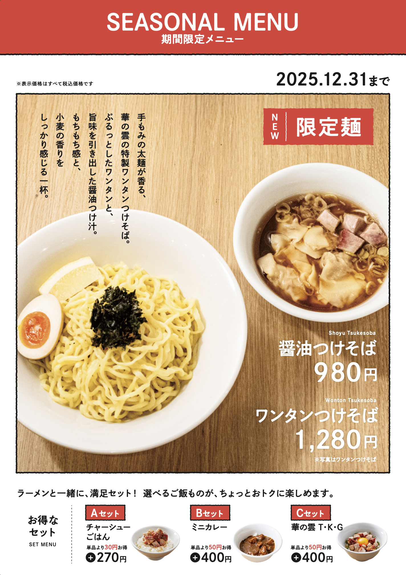 ■ワンタンつけそば 1,280円