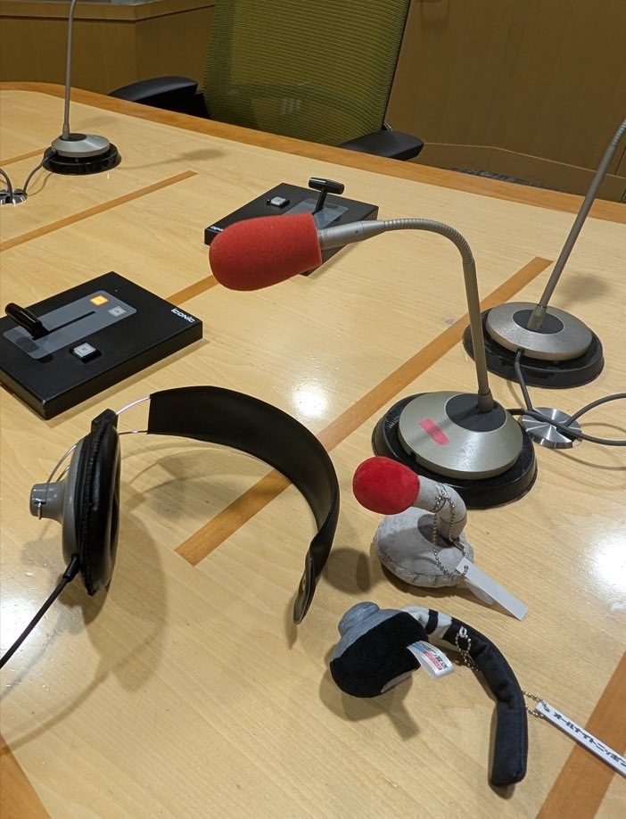 (※画像内のカフとパネルは現在発売中の「ニッポン放送監修 ミニチュアラジオブース2」になります。ぬいぐるみではございません)