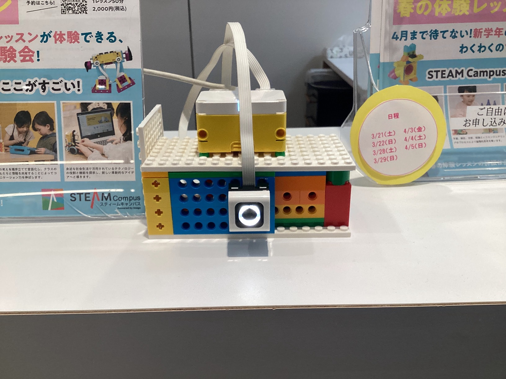 4Fの教室前ではレゴブロックを使ったプログラミング教材を展示しております!!