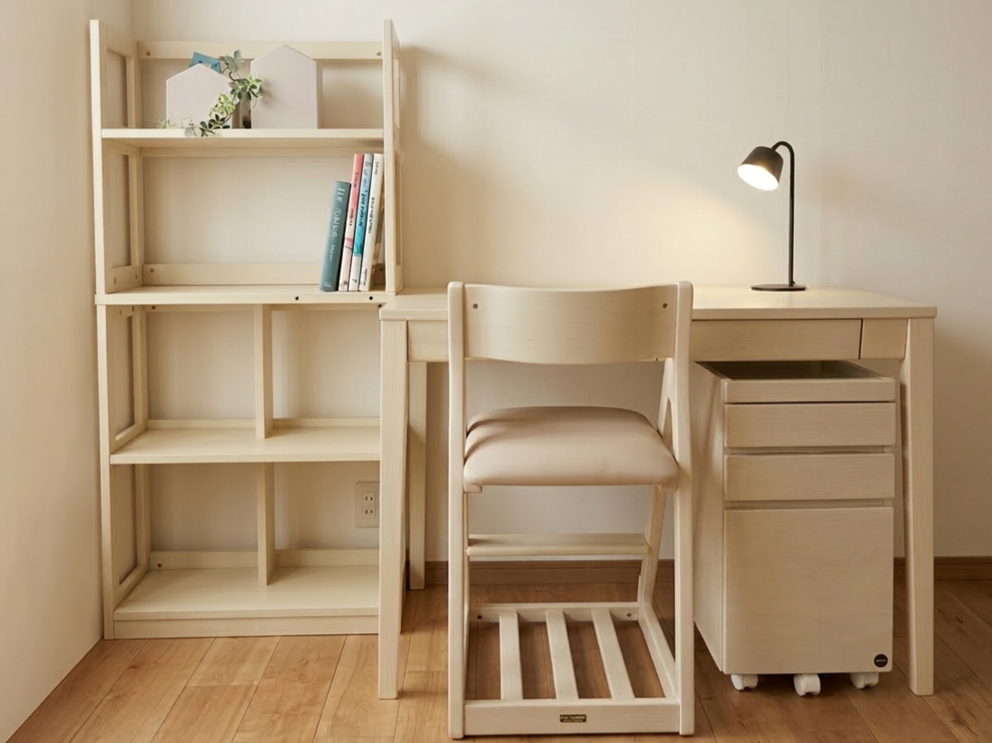 シンプルなデザインで、お子様の学習机から大人のテレワークデスクとして家族で使えます。