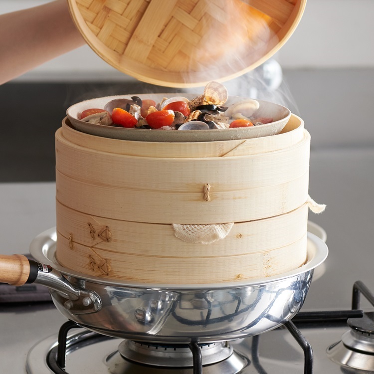お持ちのフライパンに合わせて使うタイプ。フライパンとの間にせいろ受け台(別売)をはさんで使用します。