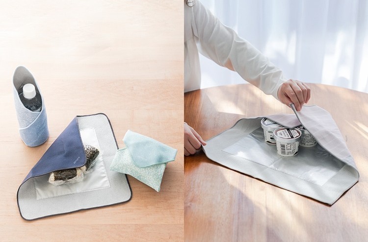 特殊素材で巻くだけでピタッと包める、KEYUCAの「巻くだけ保冷クロス」。
