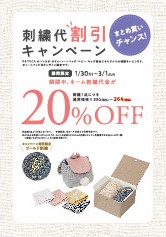 ☆刺繍代20%OFFキャンペーン2026開催中☆