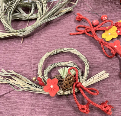親子で作るレモングラスのしめ縄作り