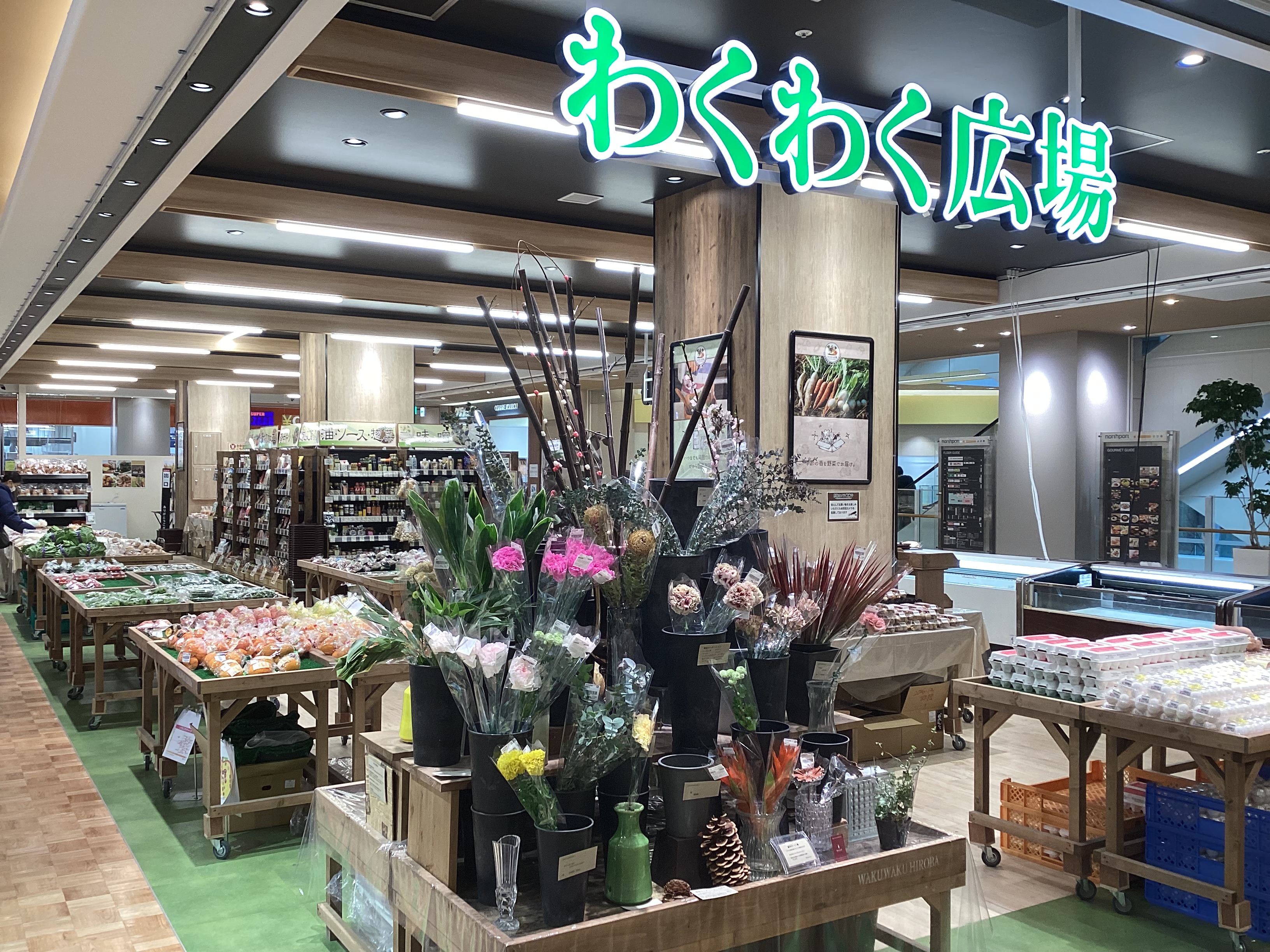 地域を結ぶ直売広場「わくわく広場」は、地元生産者さんが直接納品する新鮮な野菜・果物、手作り弁当やパン、和菓子・洋菓子を取り揃えたお店です。 その他にも日本各地のこだわり食材や調味料を数多くご用意しています。