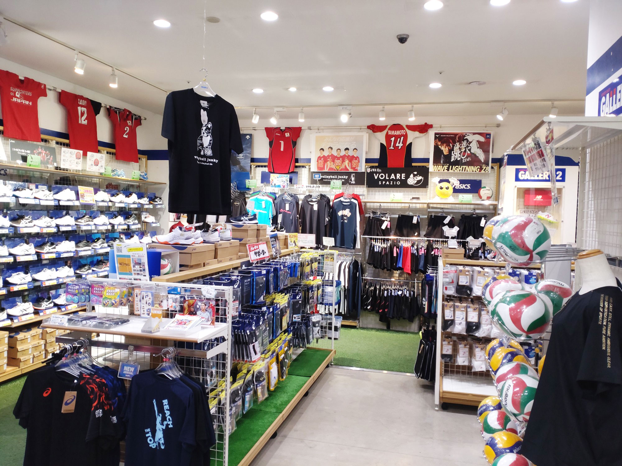 GALLERY・2最大級の広さを誇る店内にはサッカー、フットサル、テニス、バスケットボール、バレーボール、スイミング、ランニング用品が盛りだくさん。 ご家族の皆様が満足できる店内の雰囲気もお楽しみ下さい! 特にジュニア用品の豊富さは必見! これから始める初心者の方も安心できる品揃え、さらに部活・クラブなどで本格的に取り組んでる方へのサポートも充実。