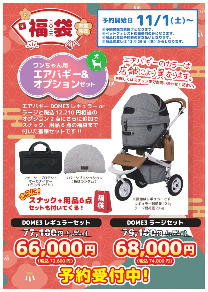 ペットフォレストでは今年よりエアバギーの福袋を予約販売しております✨