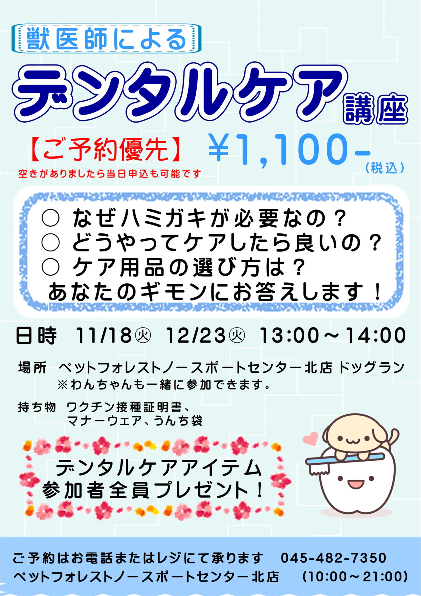 更新日:2025.11.08 ペットフォレスト 045-482-7350 ★獣医師によるデンタルケア講座開催★ いつもご利用ありがとうございます。 獣医師によるデンタルケア講座を開催します。 会場はペットフォレストノースポートセンター北店のドッグランですので、わんちゃんもご一緒に参加可能です。 ご予約優先となりますので、店舗レジまたはお電話にてお問い合わせください。 X この店舗のショップニュース ペットフォレストオリジナルカレンダープレゼント!!! ★12月試食会イベント★ ★ドッグマッサージ12月・1月スケジュール★ エアバギー福袋予約販売開始!!
