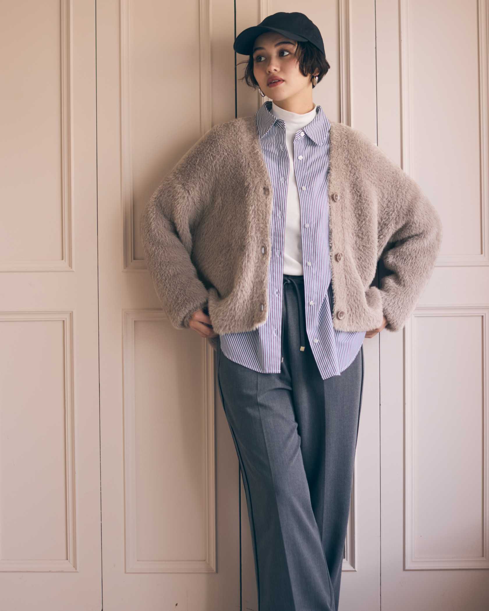 羽織るだけで秋冬ムードになるシャギーカーディガン。