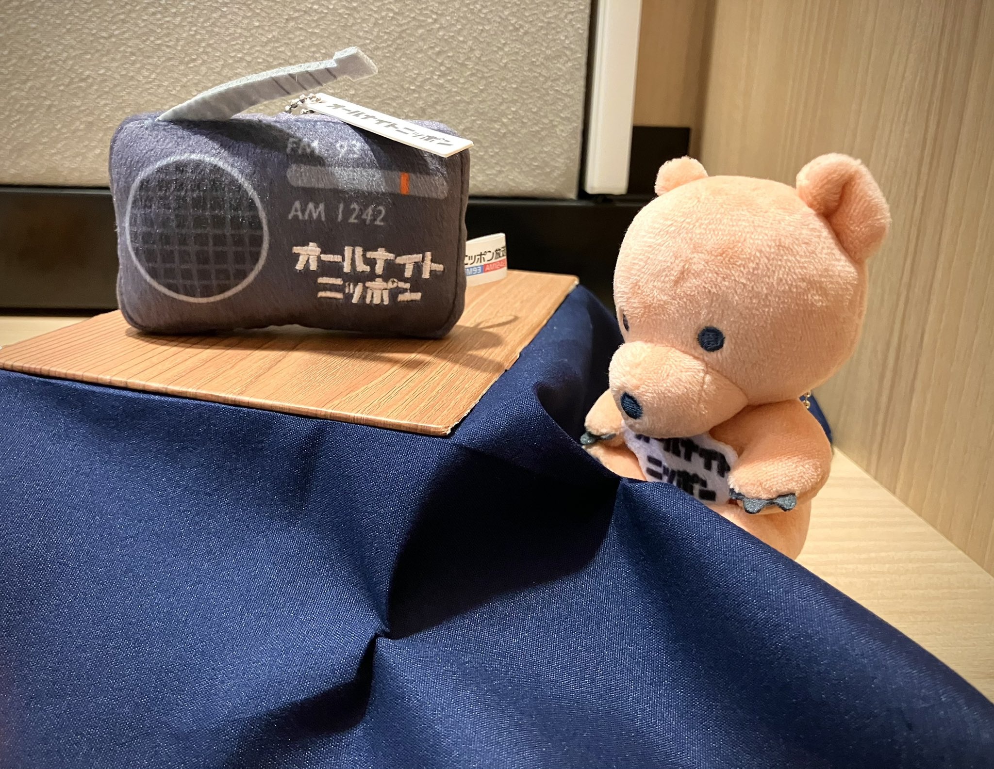 (※画像内のカフとパネルは現在発売中の「ニッポン放送監修 ミニチュアラジオブース2」になります。ぬいぐるみではございません)